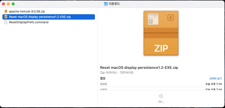 +) 혹시 압축 풀고 .command 파일명이 ResetDisplayPrefs.command 와 다르다면 그에 맞는 이름으로 바꿔주세요.