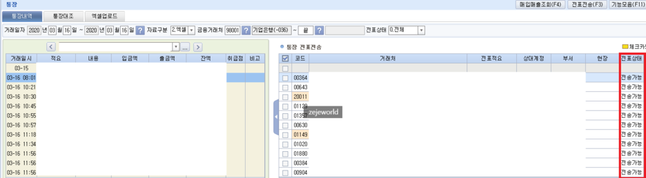 방금 전표 치다가 실수로 전표를 다 치지도 않았는데 통장내역에서 전체 선택 후 전표전송을 눌러버렸다.
