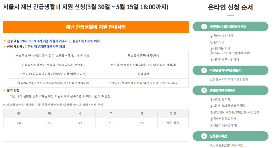 신청 대상은 3월 18일 기준 서울시 거주 가구여야 하고, 중위소득이 100% 이하여야 한다.
