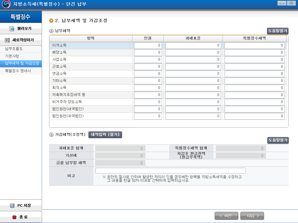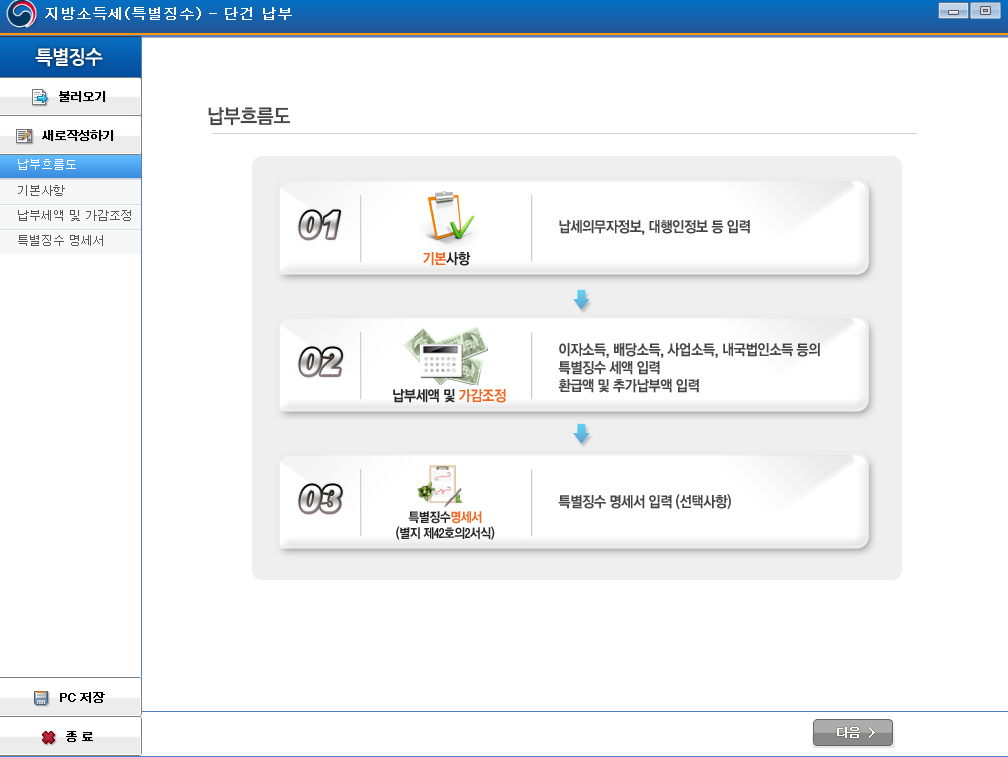 공인인증서 로그인 하고 신고하기 > 지방소득세 > 특별징수 > 단건납부
