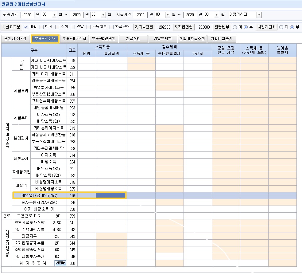여기 회사는 이자소득이 있어서 부표도 작성해준다. 사실 이 부분은 내가 잘 모르는 부분이고 왜 하는지도 파악이 안돼서 우선 배운대로 한다.