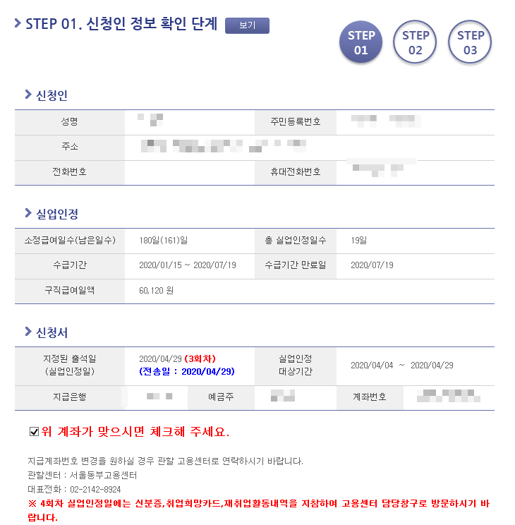 1차 실업인정일엔 필수 참석이어서 그 때 참석 후 2차에는 취업을 해서 취업사실신고를 통해 실업급여를 지급받았다. 3차 실업인정일에 처음으로 집에서 구직급여를 신청해보는 거나 마찬가지라서 기록하려고 한다.