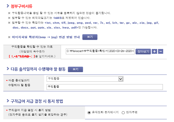 어려운 건 없는데 나도 하면서 긴가민가 하는 부분이 좀 있긴 했다. 구직활동확인칸에 입력을 하는건지 아님 걍 첨부파일로만 되는건지 잘 모르겠어서.. 우선은 하란대로 입력 다 했으니까 29일에 전송하면 담당자가 확인 하고 전화를 주지 않을까 싶다.