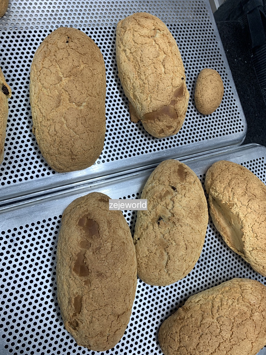 토핑을 밀다가 찢어지면 위의 사진처럼 이상하게 빵이 구워진다. 덧가루를 꼭 밀대와 바닥에 적당히 뿌려준 후 작업할 것.